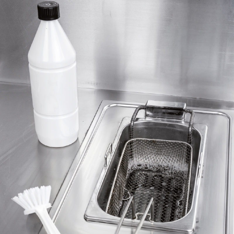 Priporočljivo je, da preden cvrtnik napolnimo s svežim oljem, v cvrtniku prevrete detergent za čiščenje pečice!
