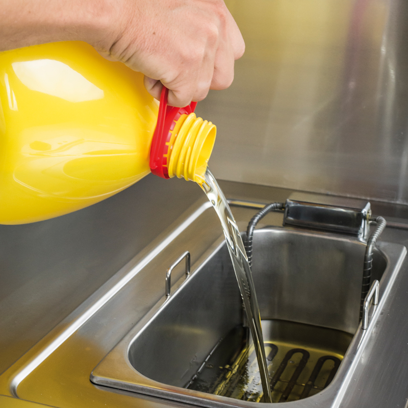 Pred uporabo tekočih olj seveda ni potrebno odmrzniti. Preprosto vlijte olje v cvrtnik, skoraj do najvišje oznake in nato vklopite pečico.
